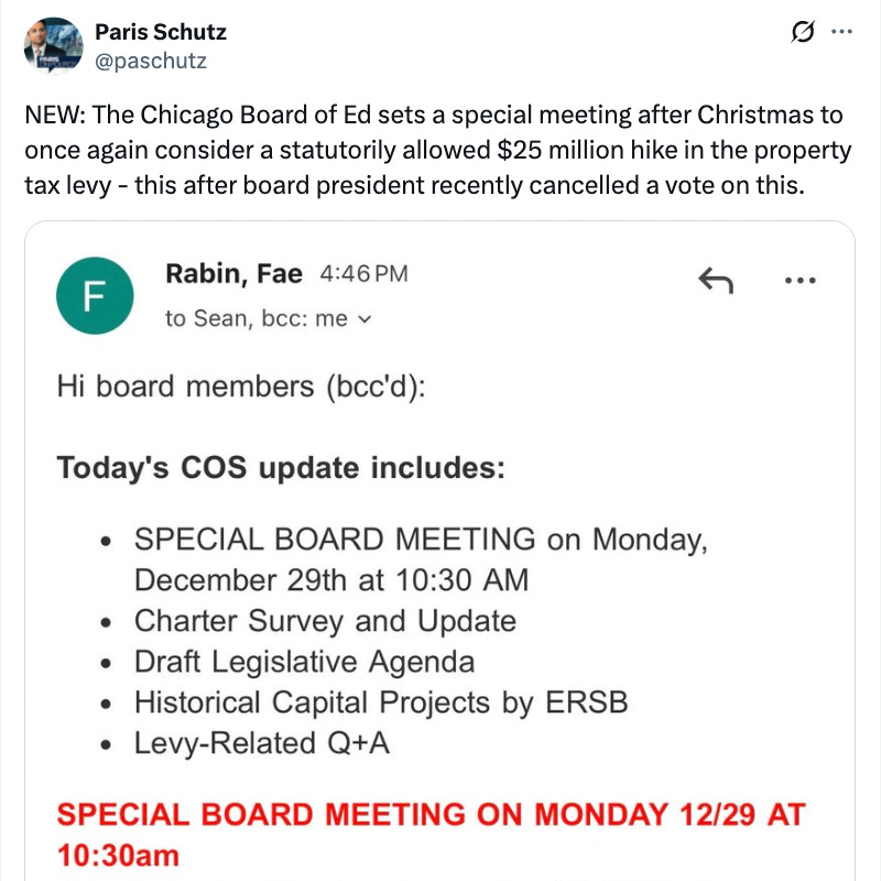 Chicago Board of Education President Sean Harden called a special meeting over the Christmas holiday. He had one objective: Quietly pass a $25 million property tax hike.