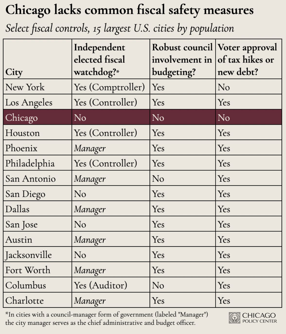 Chicago’s treasurer has none of the oversight, audit, or fiscal-control powers that these offices have in other major cities.
